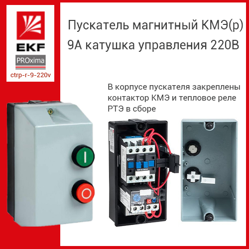 Пускатель магнитный КМЭ(р) 9А катушка управления 220В АС IP65 с кнопками П+С 1НО — оптимальный выбор для безопасного запуска и остановки электродвигателей с гарантированной защитой от перегрузок.