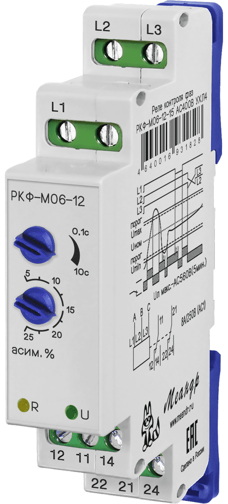 Реле контроля фаз РКФ-М06-12-15 380B УХЛ2