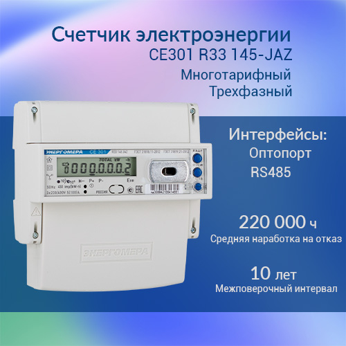Счетчик электроэнергии CE301 R33 145-JAZ — это надежное решение для эффективного учета электрической энергии с дополнительными функциями контроля мощности и возможностью интеграции в современные системы энергоменеджмента.