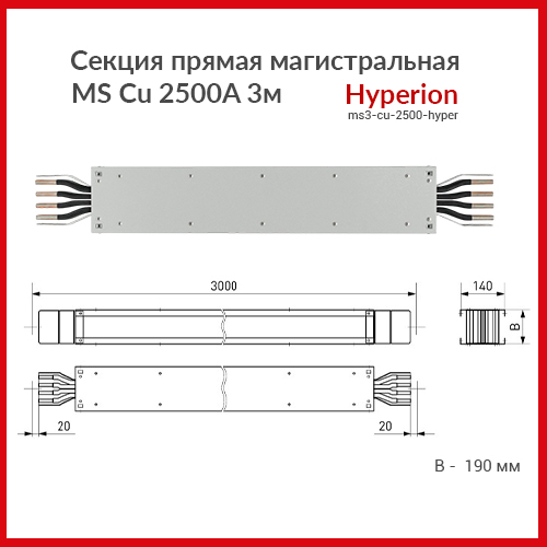 Секция прямая магистральная MS Cu 2500A 3м Hyperion